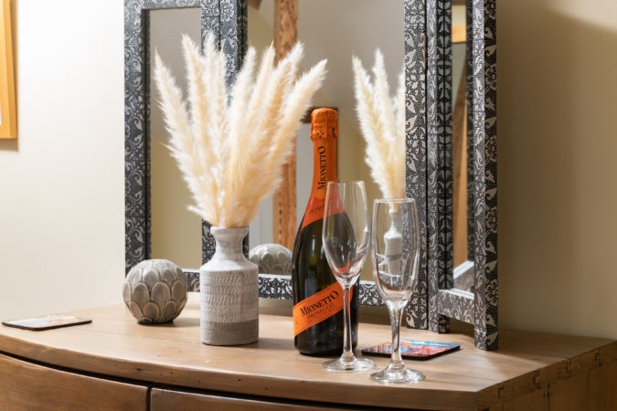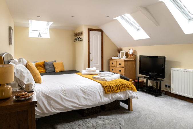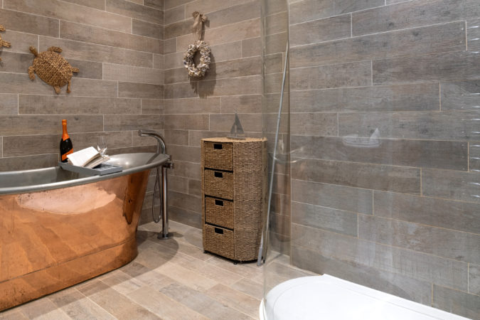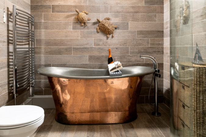 Whilst there are four steps into Palmer’s, the two ground floor bedrooms – one with a walk-in ensuite shower room – are incredibly plush for guests with reduced mobility. If you prefer a long soak, the family bathroom boasts a freestanding copper bath, adding to the amazing décor and sense of luxury. The beautiful blend of hard floors throughout makes the house practical for dogs too.