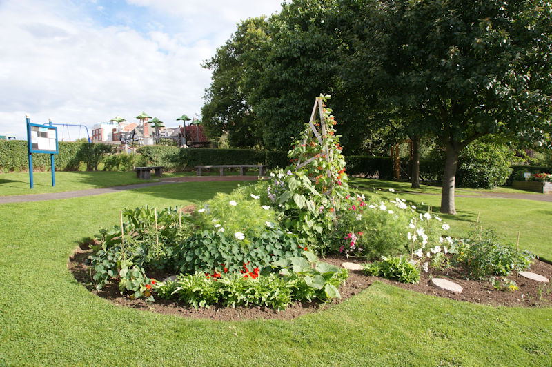 The Community Garden has a vegetable taster bed, and a ‘help yourself’ herb garden for public use. There are raised beds for use by people with differing abilities.